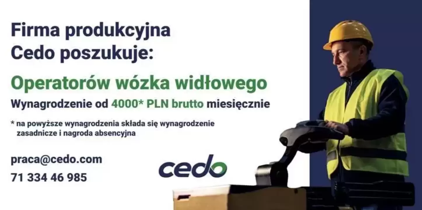 Firma Cedo poszukuje Operatorów wózka widłowego