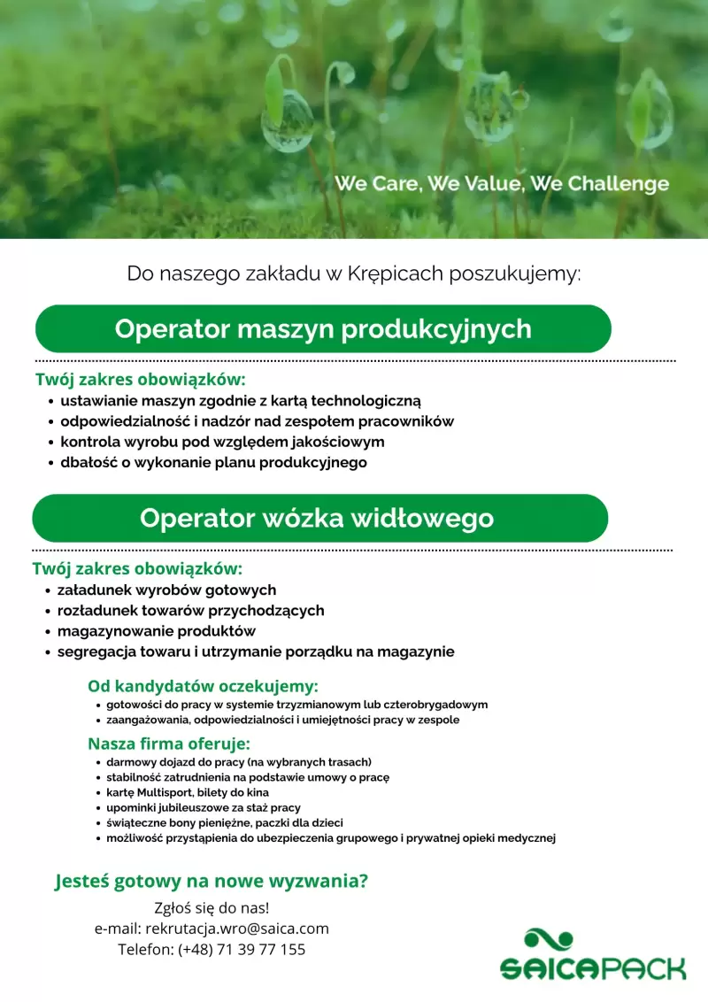 Szukasz stabilnej pracy w nowoczesnym zakładzie produkcyjnym? Dołącz do zespołu Saica Pack w Krępicach!