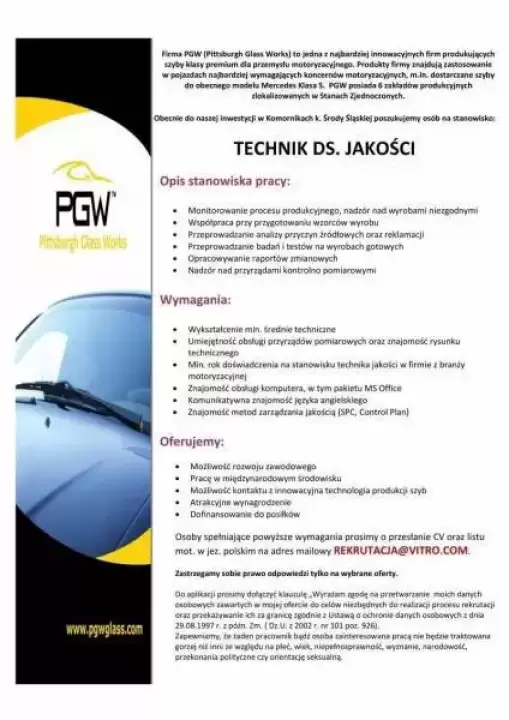 Praca w firmie PGW dla technika ds. jakości