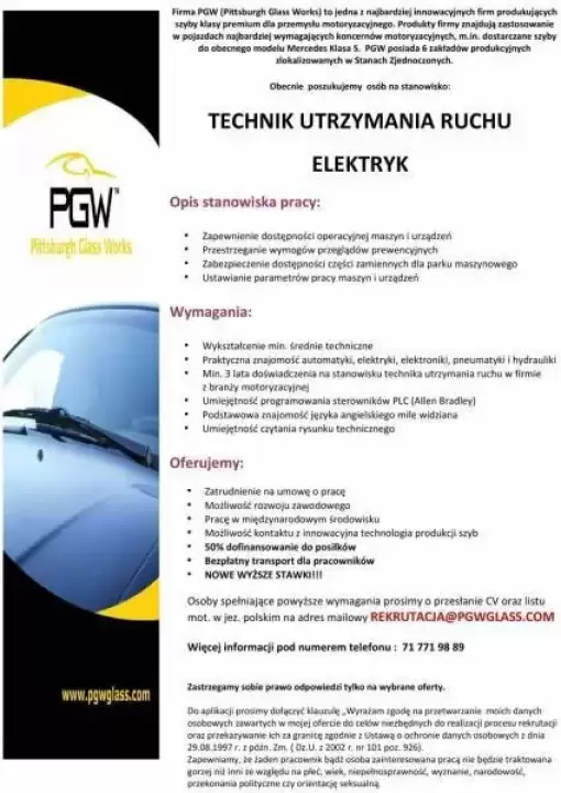 Technik Utrzymania Ruchu - Elektryk. PRACA!