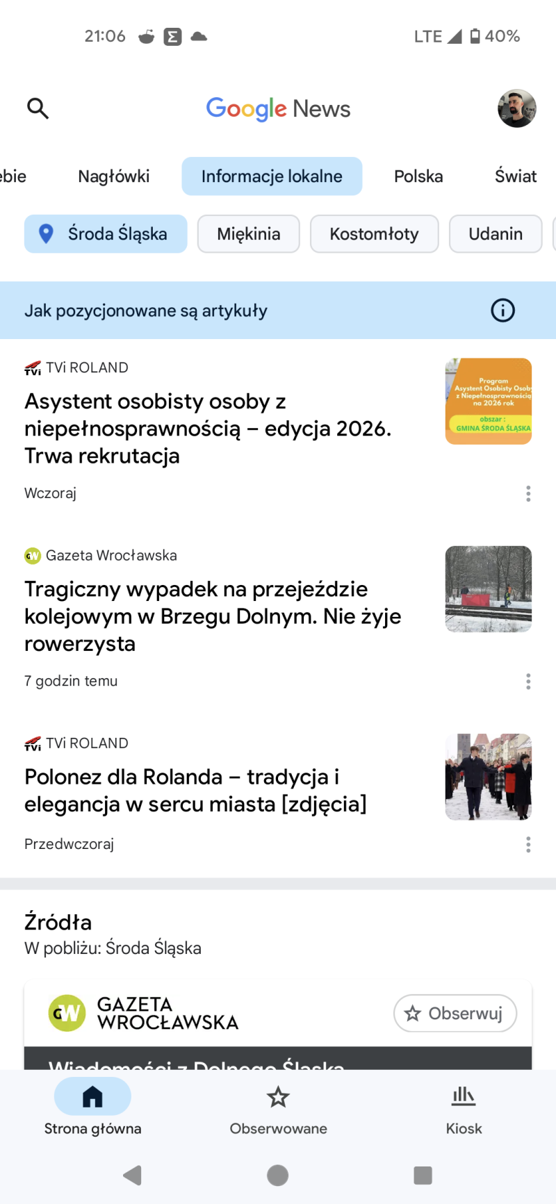 - Otworzyć aplikację lub stronę Google News.