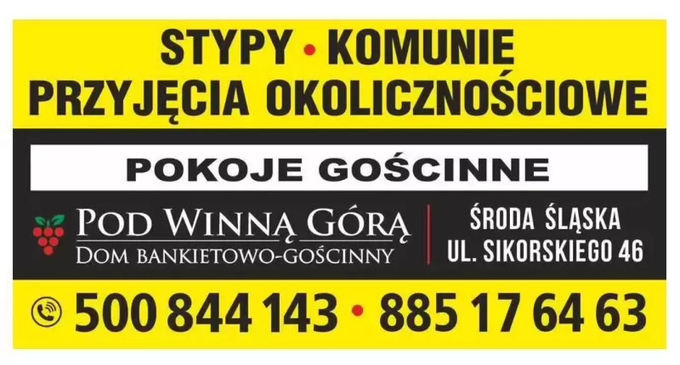 Dom Bankietowo-Gościny „Pod Winną Górą” położony jest na obrzeżach Środy Śląskiej, w cichej i spokojnej dzielnicy otoczonej zielenią, a sala bankietowa z kuchnią na miejscu pozwala na organizację przyjęć i imprez okolicznościowych - więcej informacji na stronie: www.podwinnagora.pl