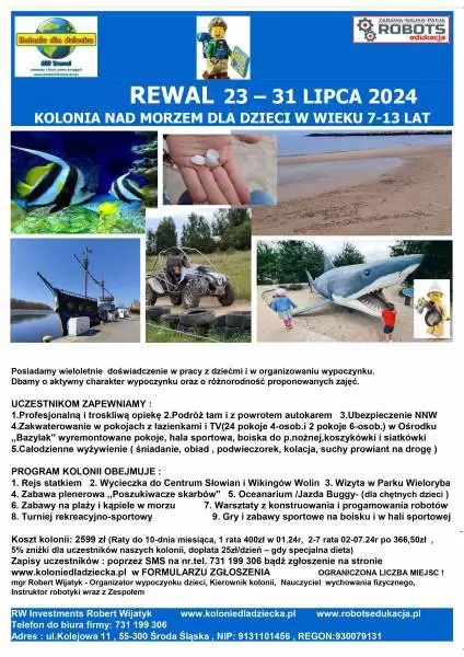 RW Investments Robert Wijatyk, RW Travel, ROBOTS edukacja - zapraszają na kolonie dla dzieci w wieku 7-13 lat.