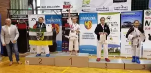 Srebrne: Maria Kułakowska w kata w U-11,Kamil Brzeziński w kata U-11 oraz drużyna w składzie - Michał Dziedzicki, Patryk Dul i Bartosz Zamaro w U-14.