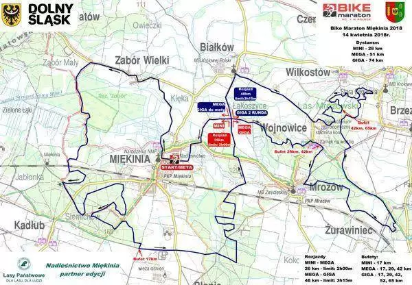 Będzie też oczywiście można przejechać się trasą wyścigu na dystansie MINI (28 km) i MEGA (51 km). Mapy i profile tras przygotowanych na tegoroczny Bike Maraton w Miękini są już dostępne na http://bikemaraton.com.pl.