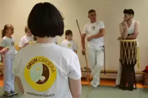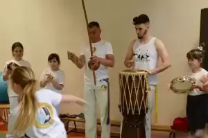Nieodłączną częścią treningu capoeiry jest muzyka, którą uczniowie tworzą sami. Używają do tego prostych instrumentów uderzanych: atabaque, berimbau i pandeiro. Do tego często śpiewają i klaszczą. - Moim zdaniem capoeira jest dla dziecka jednym z najbardziej rozwijających sportów. Oprócz tego, że jest gimnastyka, elementy akrobatyki, sztuka walki, to jest ten akcent muzyczny. Piosenki śpiewamy w innym języku, portugalskim. Całe nazewnictwo technik jest z języka portugalskiego. Capoeira rozwija wiele ważnych obszarów u dziecka - wyjaśnia trener Łukasz.