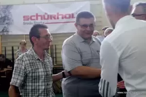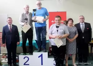W gronie niepełnosprawnych wystąpiło 20 zawodników. Głównie niewidomi i niedowidzący, byli też niepełnosprawni z innymi rodzajami schorzeń. Tutaj również jak w wyżej opisanych kategoriach walka o zwycięstwo i tytuł Księcia Turnieju toczyła się do końca. Możemy zobaczyć w tabelce powyżej jak gęsto było w czołówce. Troje zawodników, którzy stanęli na podium uzyskało po 9 dużych punktów a pierwsza dwójka z nich po 42 małe punkty, dopiero dalsze wartościowanie wyłoniło zwycięzcę tej grupy. Wygrał Jan Biskupski bardzo nieznacznie wyprzedzając Mariana Jędrzyckiego (mieszkańca Środy Śląskiej reprezentującego klub Sudety Kłodzko). Na trzecim miejscu zameldował się Wojciech Woźniak z Jutrzenki Częstochowa. Na dalszych pozycjach z ośmioma punktami znaleźli się Ryszard Czesław Rewoliński i Krzysztof Kusowski. W tym gronie rywalizacja była również zacięta i stała na wysokim poziomie. Wielu niepełnosprawnych wygrało też kilka swych pojedynków w bezpośredniej rywalizacji z osobami zdrowymi. Bardzo cieszy ich postawa, ich odwaga by wspólnie grać z osobami zdrowymi. Za to im dziękujemy. Należy się Wam ogromny szacunek, wielkie brawa. Tak trzymać. My, osoby z różnymi stopniami niepełnosprawności nigdy się nie poddamy, zawsze z każdym jak równy z równym zasiądziemy do stołu i grać będziemy. Zachęcajmy innych by poszli w nasze ślady. Jest to wspaniałe gdy wszyscy razem grają ze sobą, przy tym super atmosfera i integracja osób z różnych środowisk i grup wiekowych. A była bardzo fajna atmosfera i czysta sportowa rywalizacja.