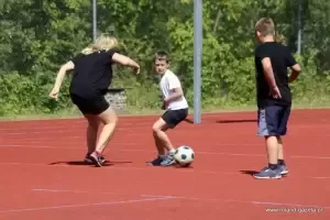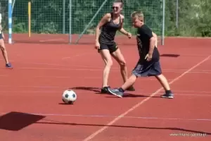 W trakcie eliminacji rozegrany został również mecz piłki nożnej - dojrzali kontra dzieci, który zakończył się remisem 2:2.