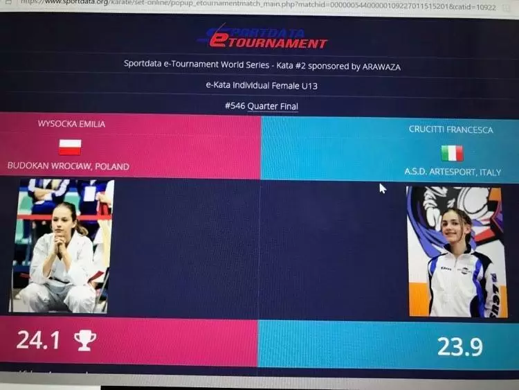 Podopieczna senseia Bogusława Boczniewicza, która aktualnie jest najlepszą zawodniczką w Polsce w kategorii 12-13 lat, pokonała w rywalizacji online pięć przeciwniczek. Były to kolejno reprezentantki Czech, Rumunii, Włoch, Portugalii, a w finale wygrała z Łotyszką.