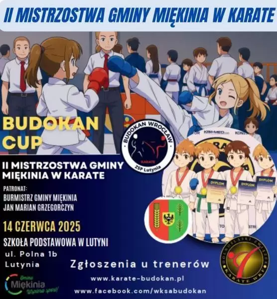 W sobotę, 14 czerwca 2025 roku, Hala Sportowa Zespołu Szkolno-Przedszkolnego w Lutyni wypełniła się sportowymi emocjami, kibicami i młodymi adeptami sztuk walki. Tego dnia odbyły się II Mistrzostwa Miękini w Karate Budokan Cup, których organizatorem był Uczniowski Klub Sportowy Karate ZSP Lutynia, działający przy Karate Budokan Wrocław.