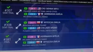 Znakomicie spisała się podopieczna senseia Bogusława Boczniewicza - Emilia Wysocka, która startowała w dwóch e-turniejach w karate olimpijskim WKF zdobywając w nich 2 złote medale w kategorii female U14.