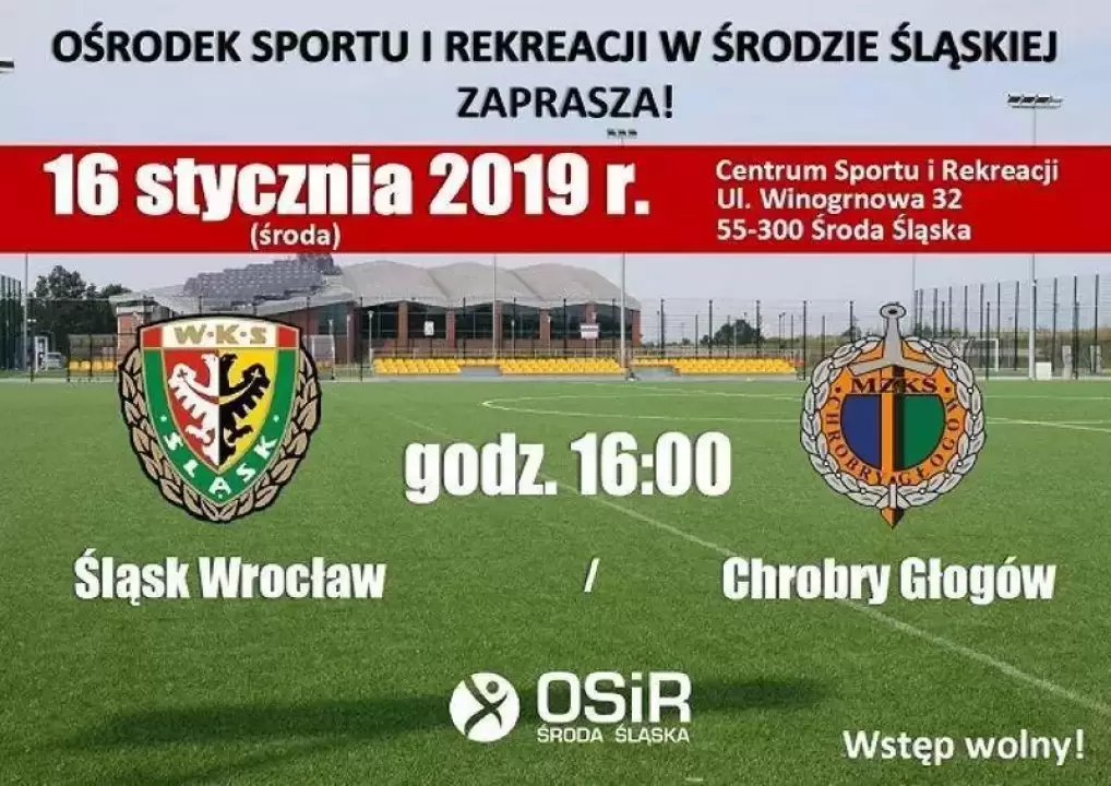 Już jutro 16 stycznia 2019 r. o godzinie 16:00 rozegrany zostanie mecz drużyn Śląsk Wrocław – Chrobry Głogów.