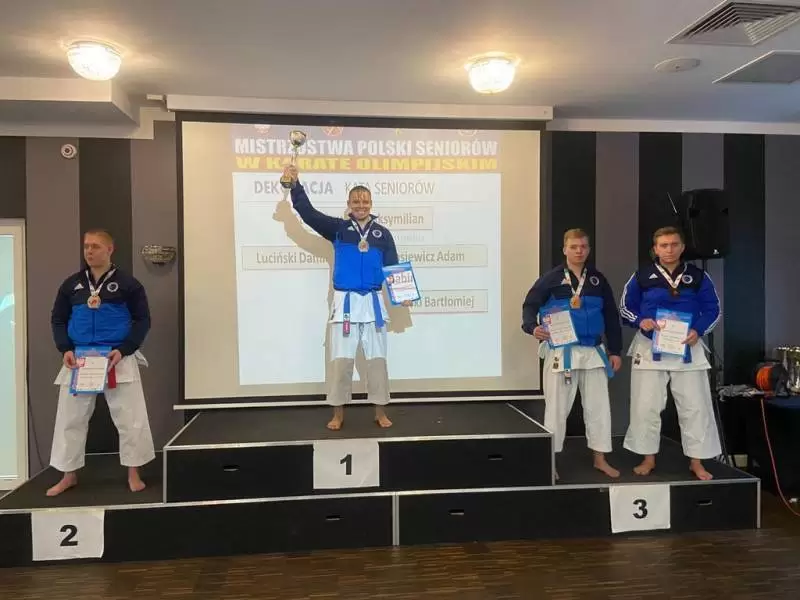04.10.2020 r., również w Legnicy, odbyły się Mistrzostwa Polski Seniorów w Karate Olimpijskim. Startował w nich Bartłomiej Babiński, który zdobył brązowy medal w kata ind. seniorów. Bartek był bardzo bliski sprawienia dużej niespodzianki, po 3 wygranych walkach eliminacyjnych przegrał w walce o finał 3:2 z kolegą klubowym M. Szczypkowskim, aktualnie najlepszym zawodnikiem w tej konkurencji w Polsce. Bartek razem z kolegami z Wrocławia zdobył złoty medal w konkurencji kata drużynowego.