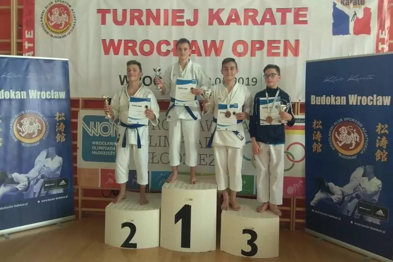 W niedzielę odbył się również drugi turniej karate. Tym razem podopieczni senseia Bogusława Boczniewicza wystartowali w turnieju Wrocław Open .Organizatorem zawodów, w którym udział wzięło ponad 250 zawodników z 40 szkół był Budokan Wrocław. W pięknej sali przy wrocławskim AWF nasi karatecy wywalczyli 6 medali- 4 złote 1 srebrny i 1 brązowy.