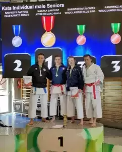Zarówno w juniorach, jak i seniorach, startowali wszyscy aktualnie najlepsi zawodnicy w kata. W juniorach wygrał 3 walki eliminacyjne, w finale przegrał z zawodnikiem z Głubczyc. W kategorii seniorów wygrał 2 walki, przegrał w walce półfinałowej i wygrał walkę o 3 m-ce z zawodnikiem z Niemiec. Doskonale spisała się również Emilia Wysocka, która zajęła 2 miejsce w kategorii kadetek 14-15 lat. Emilka ma lat 12 i wygrała 4 walki eliminacyjne w finale przegrywając z zawodniczką z Obornik 3:2.
