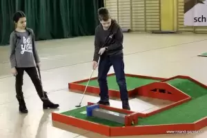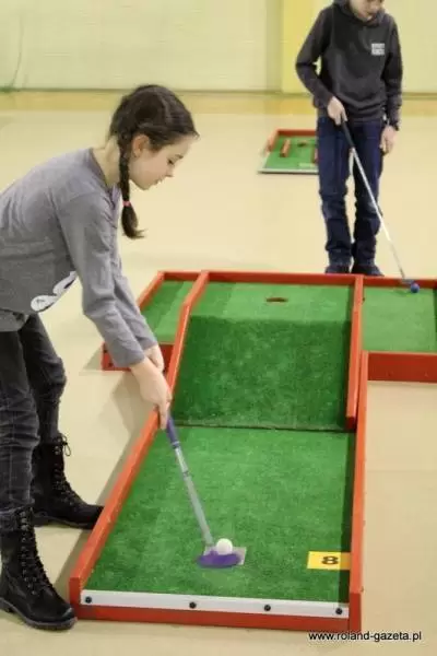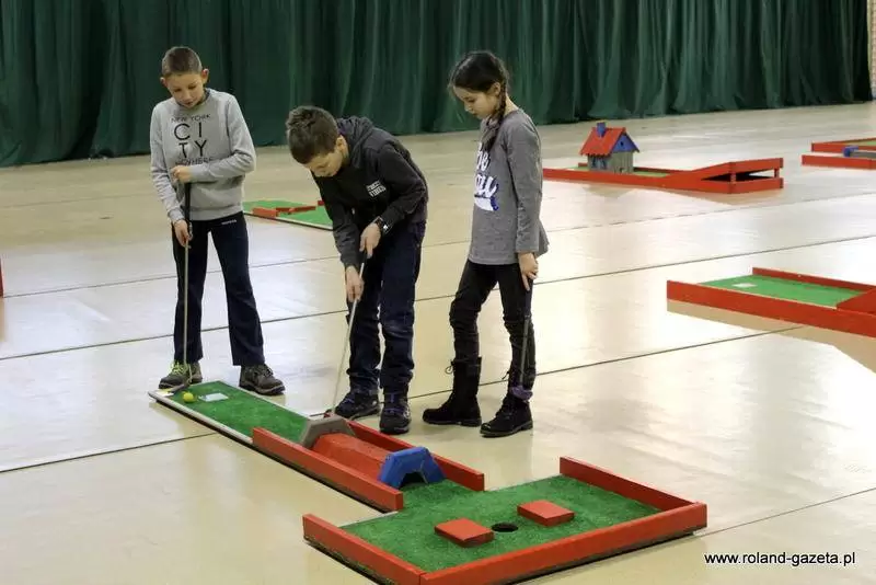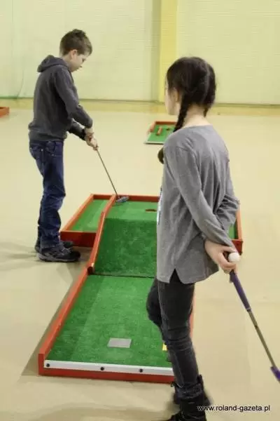 Dziś w hali sportowej w Miękini, do godziny 13:00 zaplanowano rozgrywki minigolfa. Można tu było spotkać zarówno dzieci jak i dorosłych, którzy przyszli zmagać się z "polami" golfowymi.