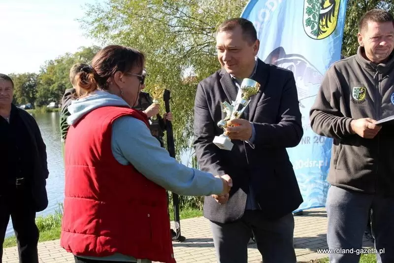 Swój puchar odebrała również startująca w zawodach Pani Lucyna Zawadzka, która złowiła ryby o wadze 1,460 g.