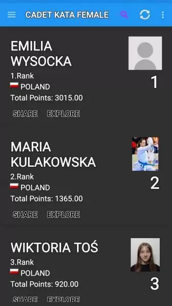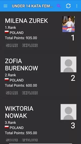 Czołową zawodniczką w rankingu PUK jest Milena Żurek, która jest nr 1 w kata ind. dziewcząt w kategorii wiekowej U-14.