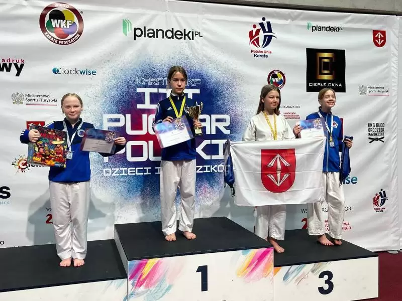 - Emilia Jurczysyzn - 1 miejsce - ZŁOTY MEDAL – ZDOBYWCZYNI PUCHARU POLSKI Dzieci i Młodzieży w Karate WKF w kategorii kata KUMITE DZIEWCZĄT U12 -45 KG (walki).