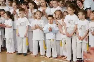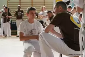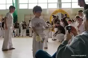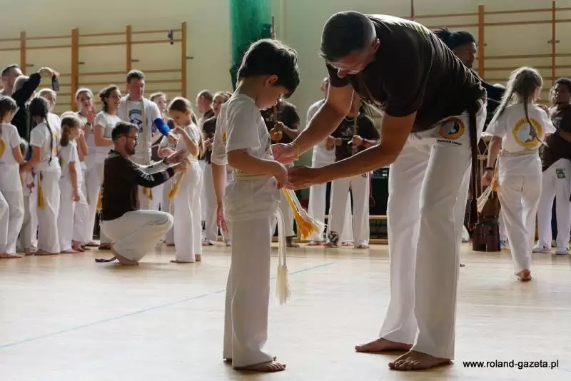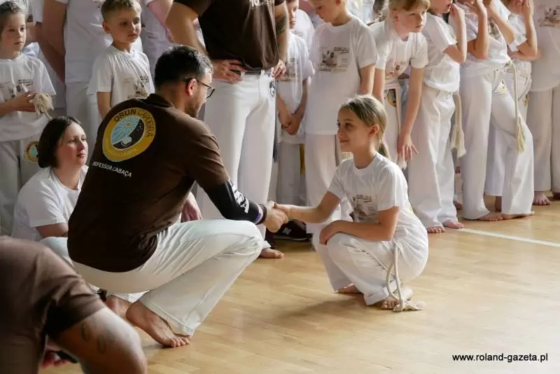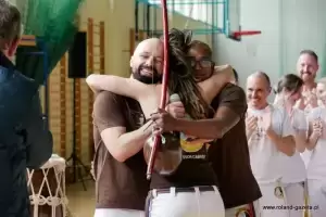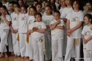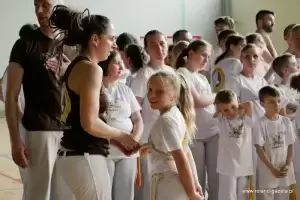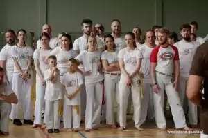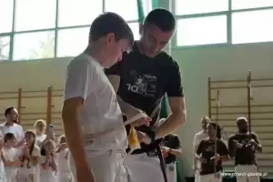 Następnie rozpoczęły się już planowane walki pokazowe w wykonaniu instruktorów i profesorów, a po nich treningi w grupach. Najbardziej wyczekiwaną część - nadanie stopni - pozostawiono na koniec. Obecni w Środzie Śląskiej adepci capoeiry kolejno przechodzili uroczysty proces i odbierali nowe sznury.