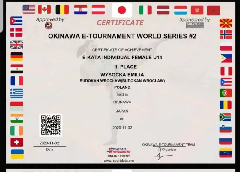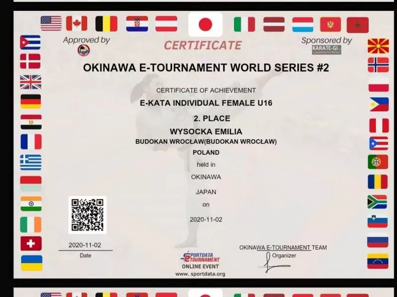 Tym razem Emilia Wysocka i Maria Kułakowska startowały w turnieju karate Okinawa E-Tournament World Series #2, w którym wzięło udział 446 zawodników z 35 państw oraz 67 klubów z Francji, Niemiec, USA, Venezueli, Portugalii, RPA, Szwajcarii, Anglii, Maroca, Indii, Idonezji, Egiptu, Kanady, Austrii, Belgii, Chorwacji, Kuby, Włoch, Irlandii, Łotwy, Luksemburga, Norwegii itd...