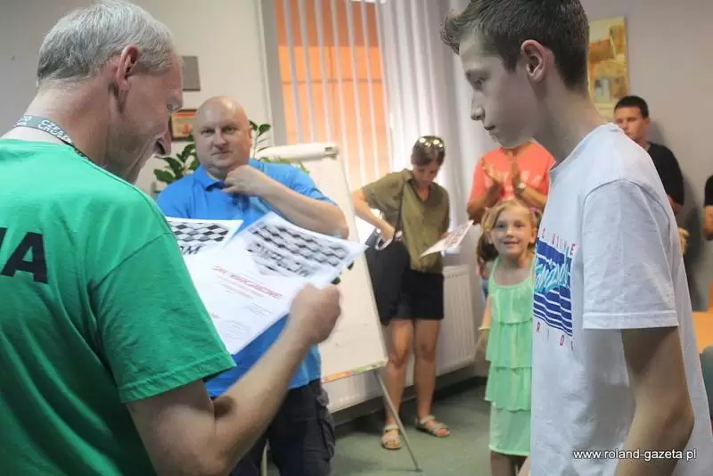 Tuż po zakończeniu rund i po zjedzeniu pizzy pani Redaktor z Roland Gazeta przeprowadziła wywiad ze zwycięzcą turnieju Wojciechem Woźniakiem, który zostanie opublikowany niebawem. Obecność Roland Gazety bardzo wszystkich ucieszyła, Redaktorzy zawsze są obecni na zawodach warcabowych.