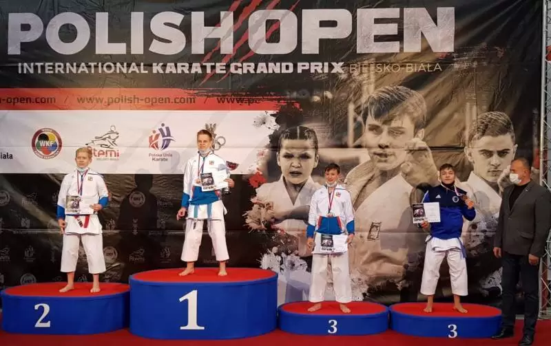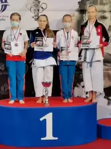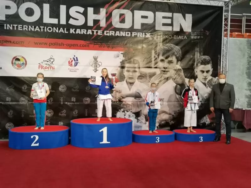 Złote wywalczyły: Milena Żurek w kategorii kata U-12, Maria Kułakowska w kata U-14 oraz Emilia Wysocka w kata kadetek.