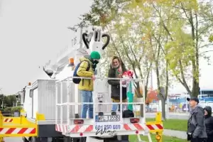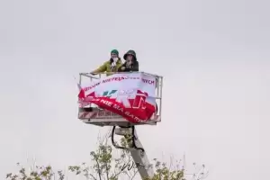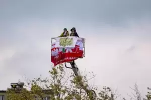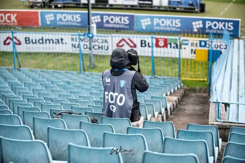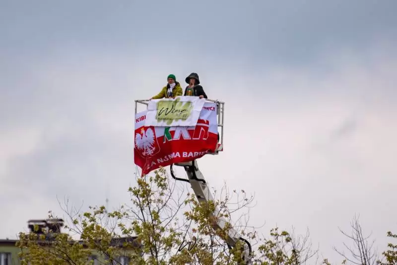 Początkowo wydawało się, że wynajęcie takiego podnośnika to szybki temat. Tylko mecz jest w niedzielę, a to dzień mało atrakcyjny do pracy. Nawet jeżeli ktoś wyraził zgodę na wynajęcie, to słysząc, że chcemy obejrzeć z niego mecz piłki nożnej, odmawiał. W końcu po dziesiątkach telefonów Tomka, trafiamy na firmę, dla której ta akcja, to atrakcja. Operator Marek, to gość z typu „damy radę”, już w rozmowach telefonicznych słyszeliśmy, że tu nie ma opcji na porażkę. Wyjeżdżamy ze Środy Śląskiej o 07.00 rano, w Płocku meldujemy się po 11.00. Na miejscu rozważamy dwie lokalizacje dla podnośnika, ostatecznie wybieramy parking przed stadionem. O 12.20 Tomasz z Martą, która zostaje chorążym, zajmują miejsca 23 metry nad ziemią. Niestety silne podmuchy wiatru zmuszają operatora do obniżenia kosza na około 18 metrów. Na szczęście padało tylko przez chwilę i w „spokoju” mogli obejrzeć mecz. Po końcowym gwizdku zwijamy sprzęt i ruszamy w drogę powrotną.