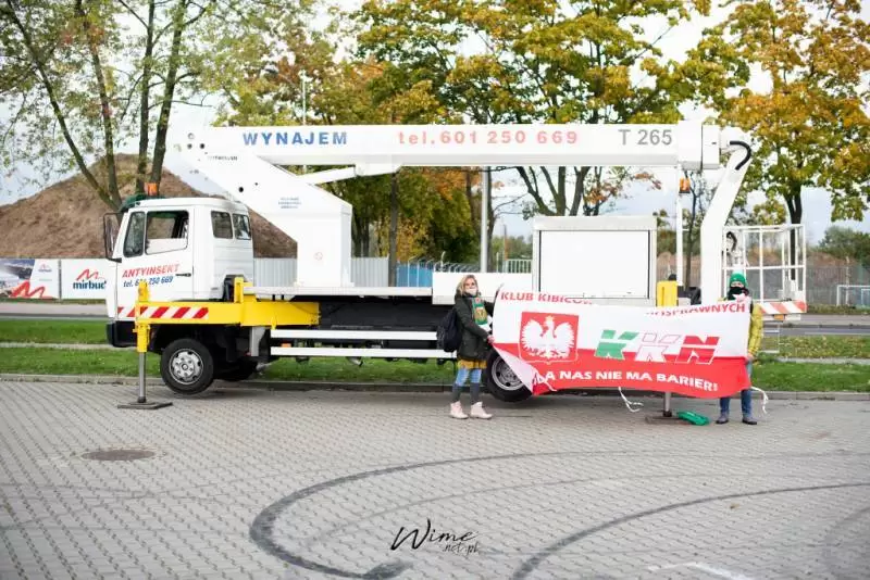 Nowe/stare obostrzenia wprowadzone przez rząd w czwartek zamknęły stadiony, choć ich sens jest mocno dyskusyjny, wszyscy kibice musieli zostać w domach. Tak myślałem do wczoraj. Tomasz Żółkiewicz, były mieszkaniec Środy Śląskiej, okrzyknięty najsłynniejszym kibicem w Polsce skontaktował się ze mną i Martą, czy nie chcielibyśmy z nim pojechać do Płocka, bo ma pewien plan. Podobnie jak ostatnim razem, postanowił wynająć wysięgnik, tak aby móc z góry oglądać mecz w Płocku. Wszelkie inne sposoby na uczestnictwo w zmaganiach Wisły z Śląskiem nie przyniosły zamierzonego skutku. Od początku wysięgnik był ostatecznością i szukaliśmy innych rozwiązań, jak się okazało, był jedyną dostępną opcją na sukces tego wyjazdu.
